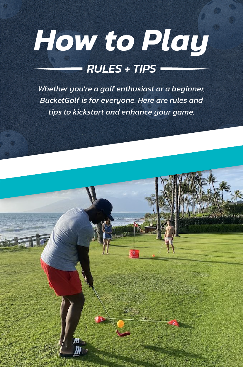 Every hole in Bucket Golf is a par 3, which means you have 3 shots to hit the bucket to get a par for every hole.