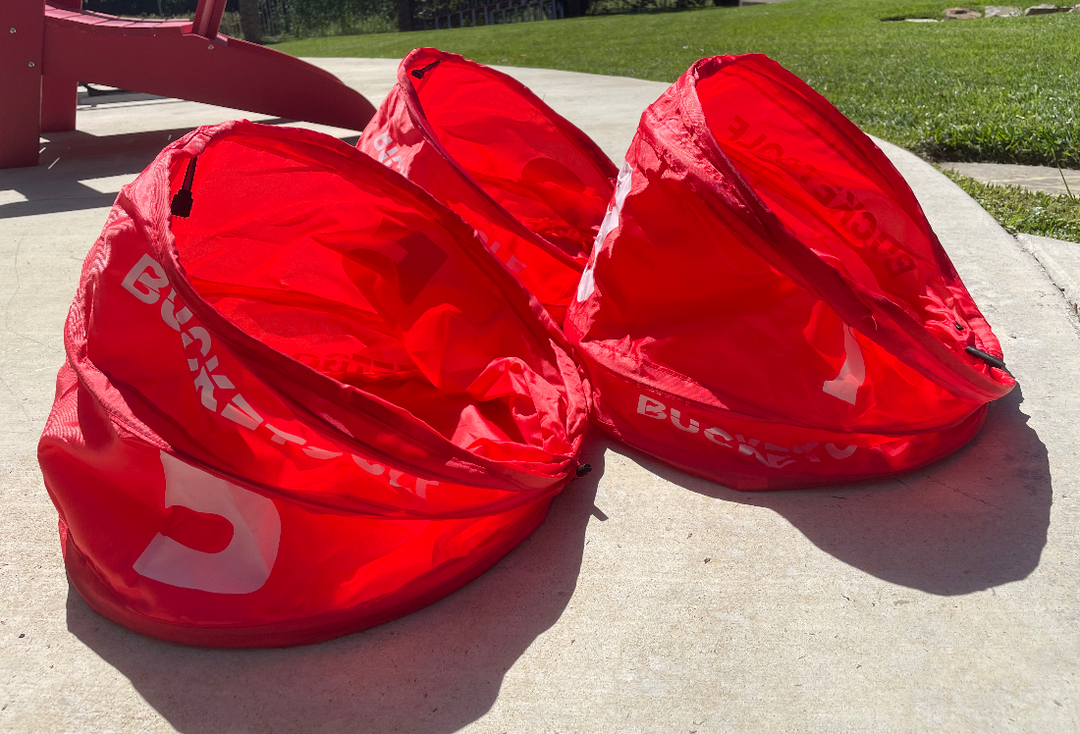 The buckets make for versatile targets that you can use in a variety of games styles. Want to make the game even easier? Try collapsing just one side or arranging the buckets in a triangle to give your kids bigger target.